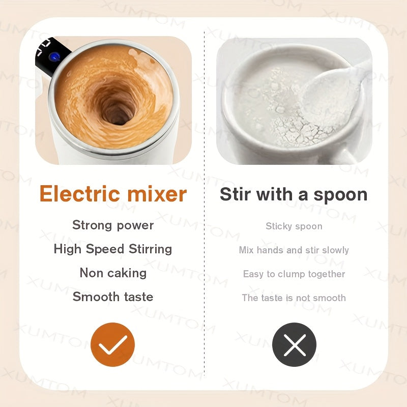 1 Automatic Stirring Coffee Cup with Temperature Display, USB Rechargeable 304 Stainless Steel, 200mAh Battery, ABS Material, Magnetic Stirrer - Portable for Home/Office, Ideal Holiday Gift